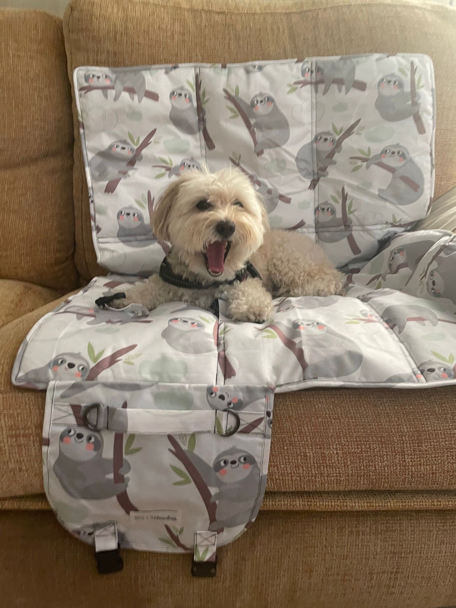 Tengo un jardín grande y la hierba a veces está mojada del riego. Le pongo la manta a la sombrita y está genial todo el día